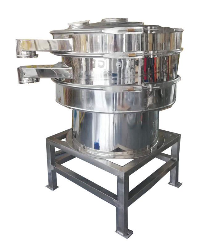 旋振篩是一種高精度細(xì)粉篩分機(jī)械,其噪音低、效率高,快速換網(wǎng)需3-5分鐘,全封閉結(jié)構(gòu),適用于粒、粉、粘液等物料的篩分過濾。旋振篩是由直立式電機(jī)作激振源,電機(jī)上、下兩端安裝有偏心重錘,將電機(jī)的旋轉(zhuǎn)運動轉(zhuǎn)變?yōu)樗健⒋怪?、傾斜的三次元運動,再把這個運動傳遞給篩面。調(diào)節(jié)上、下兩端的相位角,可以改變物料在篩面上的運動軌跡。