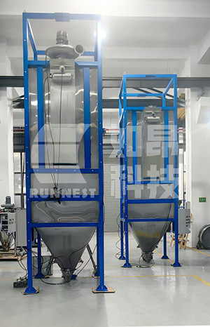 從而實現(xiàn)噸包破包卸料,半自動噸袋卸料站在一定程度上實現(xiàn)了噸袋卸料的自動化,減輕了人工勞動強度,提高了卸料效率,同時也能有效控制粉塵污染。
